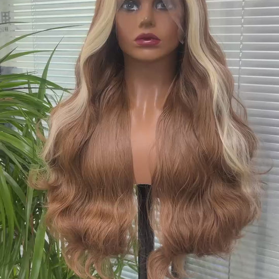 High quality synthetic wig light brown blonde,13x4 lace frontal