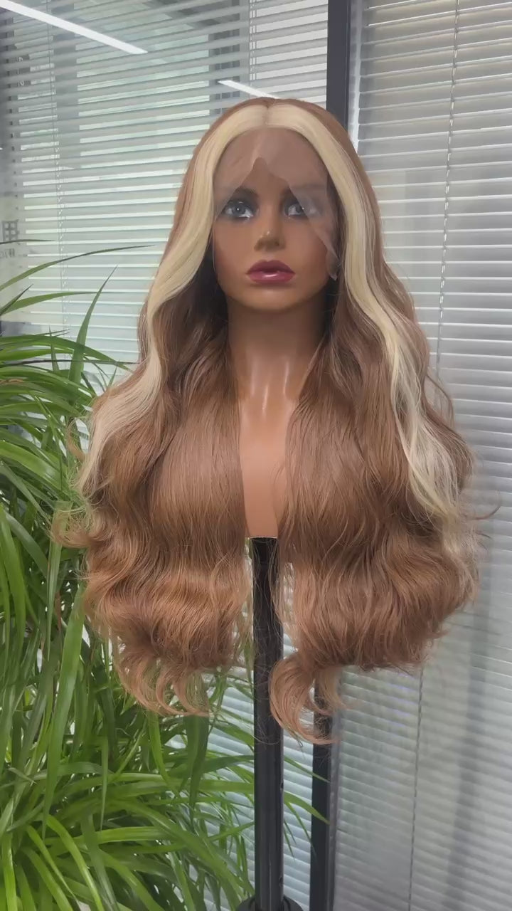 lThis synthetic wig features a high quality light brown blonde color and a 13x4 lace frontal design, providing a realistic and natural appearance. Expertly crafted and constructed, this wig offers a durable and versatile option for everyday wear. Embrace a new look with confidence and ease.