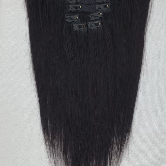 Introducing our Straight Clip In Hair Extension Human Hair 120g/Set, the perfect solution for adding length and volume to your hair instantly. Made from full head Brazilian clip hair, this set is lightweight and easy to apply. Enjoy a full, natural look with our high-quality, straight clip-in extensions.