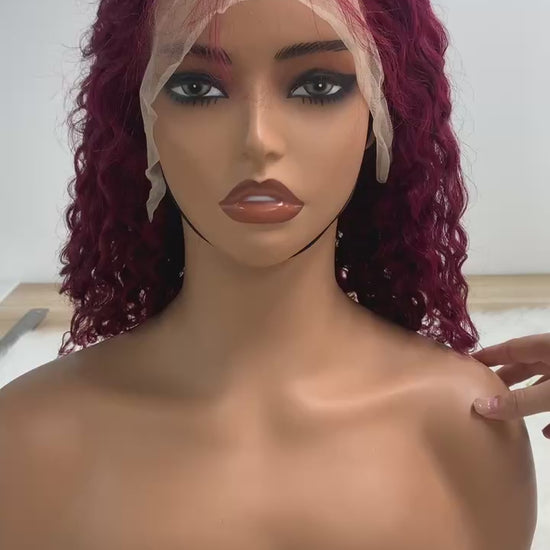 99J Burgundy Short Bob Curly Human Hair Wig HD Lace Frontal Wig Water Wave Lace Front Wig